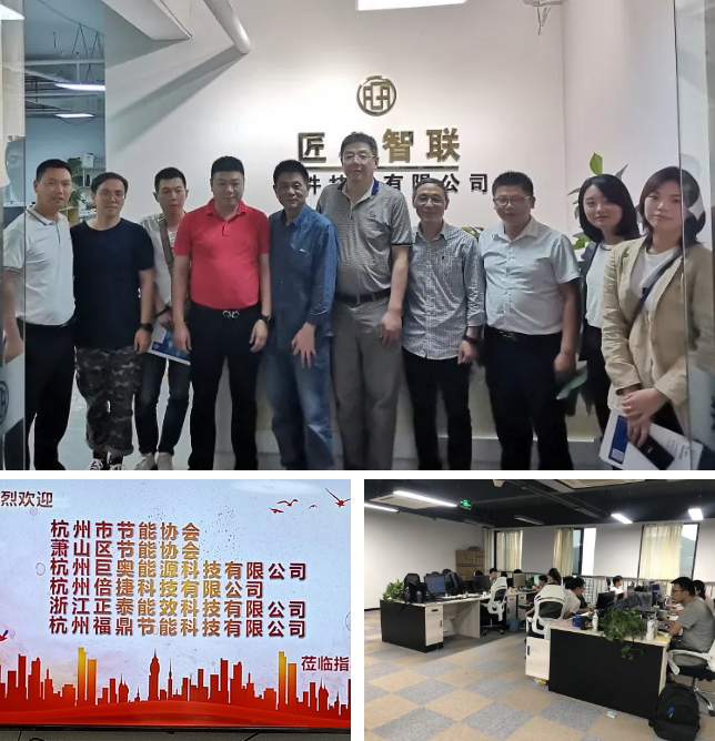 514日下午,协会秘书长包优祥、萧山区节能协会秘书长施剑中、杭州倍捷科技有限公司总经理金磊、杭州巨奥能源科技有限公司总经理胡通福、杭州福鼎节能科技服务有限公司总经理助理来宸聿、浙江正泰能效科技有限公司经理沈丹桦、张瑶均等人赴浙江匠心智联软件技术有限公司走访。匠心智联应用总监王坚华、监事杨庆荣等人与到访人员进行了座谈交流。
